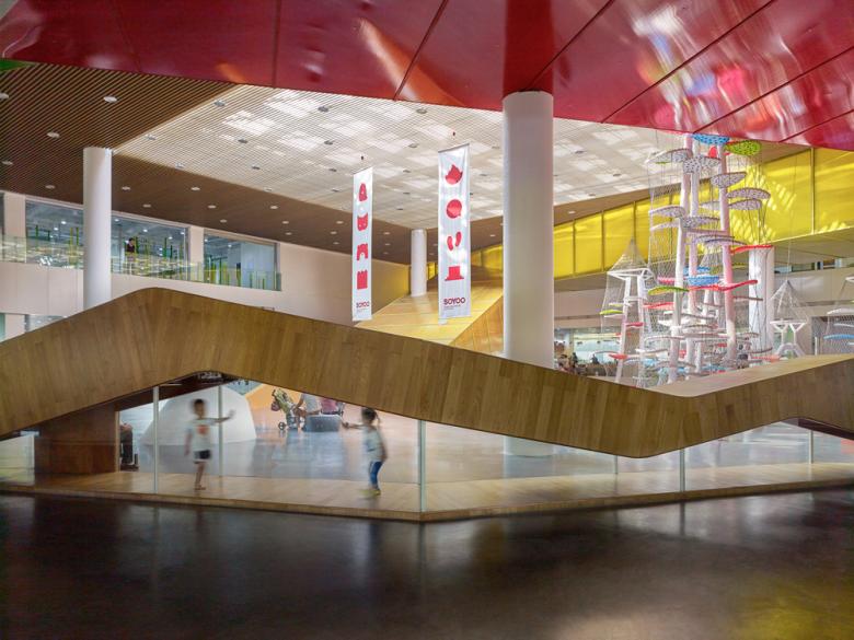 A large public space in front of the building opens up to the road intersection, easily accessible from all sides of the site. Benches and planting provide a pleasant environment beyond the building. This plaza is not only intended as a place for children to play, but also for the city dwellers to relax and gather. Its intriguing educational program and public space attracts a flow of people and businesses, with neighbouring retail spaces opening soon after construction began. As a whole, the building creates coherence and connections within the community, adding vitality to a long disengaged residential neighbourhood.