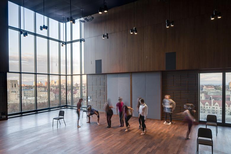 The program of a mixing bowl of the arts was a new one, thus there were few precedents. We were well aware of the quality of buildings in both the state and the city, so we knew our building needed to be rigorously conceived and built. In terms of materials, while steel is perhaps best known in the region we chose concrete and masonry because it too has a history in the region and the campus. Additionally we felt we could do our best work with materials with which we were most familiar. So we wanted our building to feel worthy to stand among the great work that has come before but not to compete with these buildings. Our work needed to relate but have its own power and voice, its own integrity.