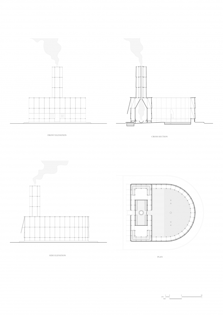 Combining changing rooms, steam rooms and cold-water fountain basins, Round About Baths offers privacy while occupying a central point in the city. Revealing hidden potentials in a car dominated urban environment, the temporary public program hacks the street equipment and transforms our perception of this forgotten space.