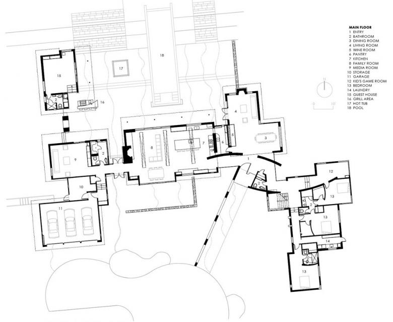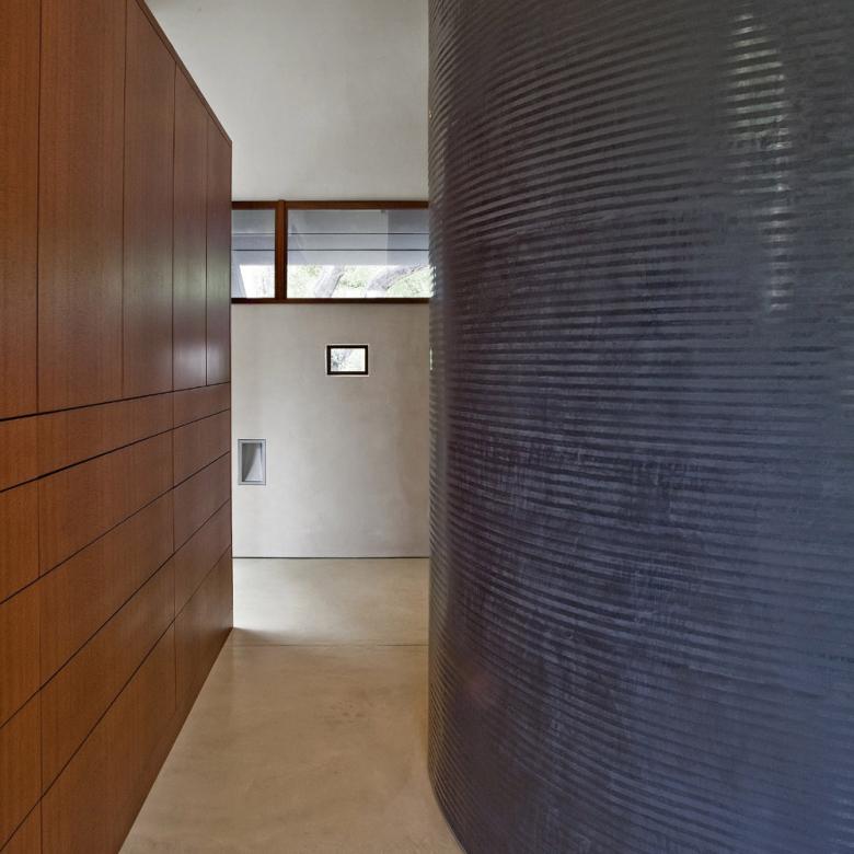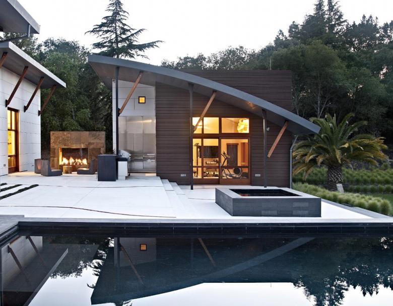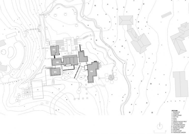 A series of roof vaults defines the various distinct yet interconnected volumes that comprise this large residence south of San Francisco. This distinction is increased by the use of various claddings -- concrete, stone, rainscreen systems -- towards breaking up the house into smaller parts and creating a variety of exterior and interior zones. Architect David Stark Wilson answered some question about the design of the house, for which they also acted as contractor.