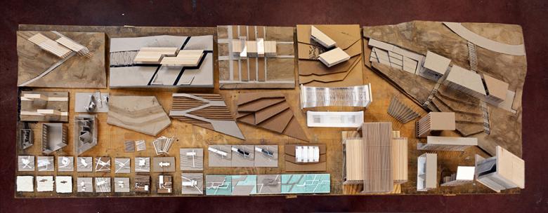 The Sharon Fieldhouse is the first design/buildLAB project that is not in a dense town center. The limited resistance of an untouched hillside site presented a unique challenge in terms of defining relevant departure points for the design. Ultimately the decision was made to mark the earth with a “linear incision”, a kind of datum which could be used to define a scale and to organize circulation. In effect, the “liner incision” was the creation of a site within a field.