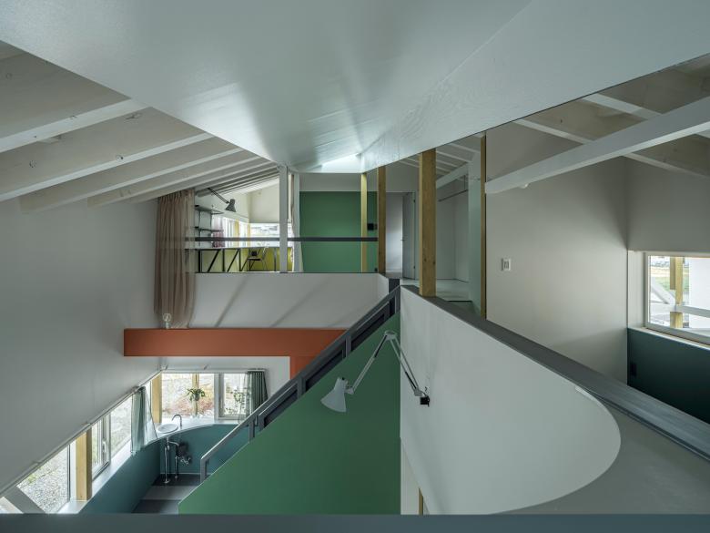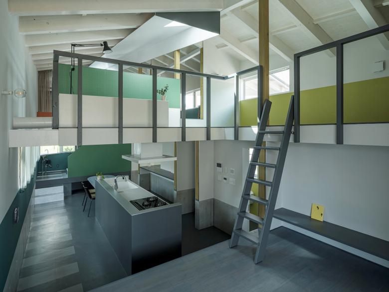 The living room is close to the second floor in this three-dimensionally interconnected space. (Photo: hideki ookura)