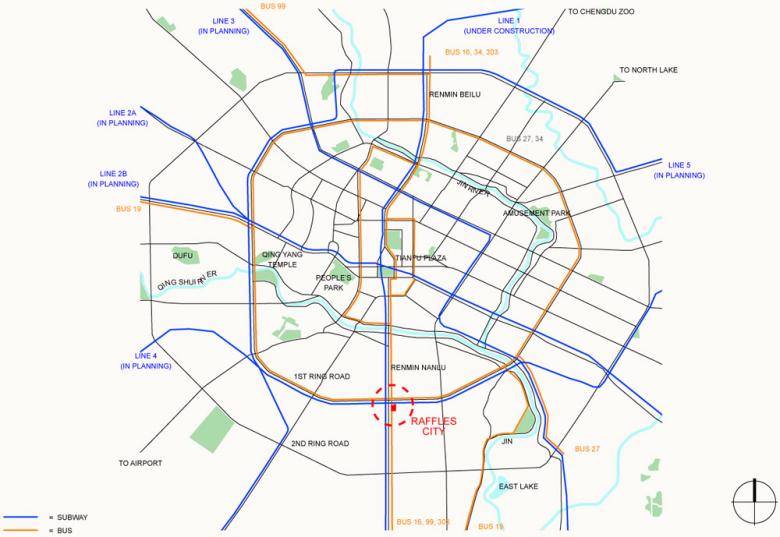 The new Raffles City complex, commissioned by Singapore based investor CapitaLand and designed by Steven Holl Architects from New York, is located in the south of the city at the crossroads of the First Ring Road and the North-South axis, on the former site of the Sichuan Provincial History Museum. The mixed used development comprises offices, serviced apartments, a hotel, cafes and a restaurant, and has direct access to a subway line, which will soon become a subway interchange. The area is the one of the most established dining, retail and entertainment centres in the city, with a high frequency of passers-by and commuters.