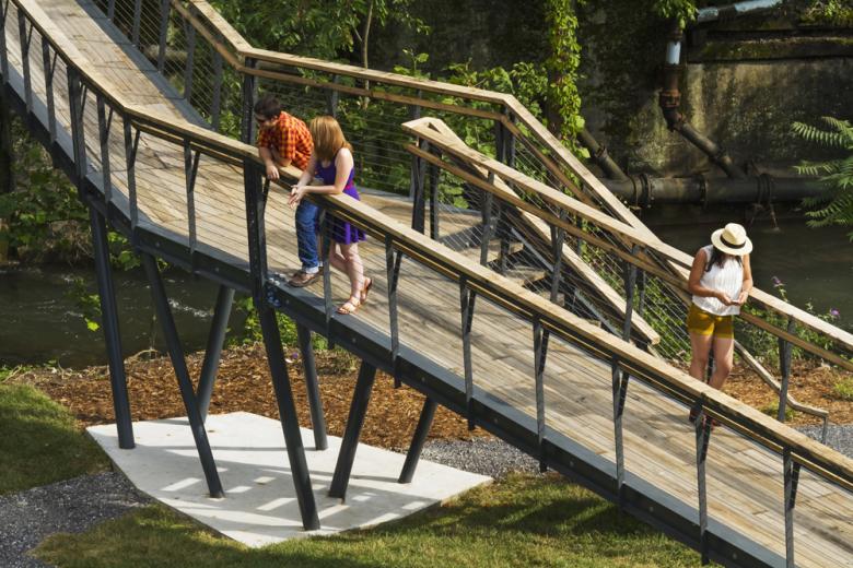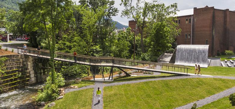The Smith Creek Pedestrian Bridge aspires to elegance of economy and purpose. Its form is clear. Its purpose is utilitarian. Its material pallet is modest. And, its impact on the land is light. The Smith Creek Pedestrian Bridge is the modern expression of Virginia's timeless agrarian sensibilities.