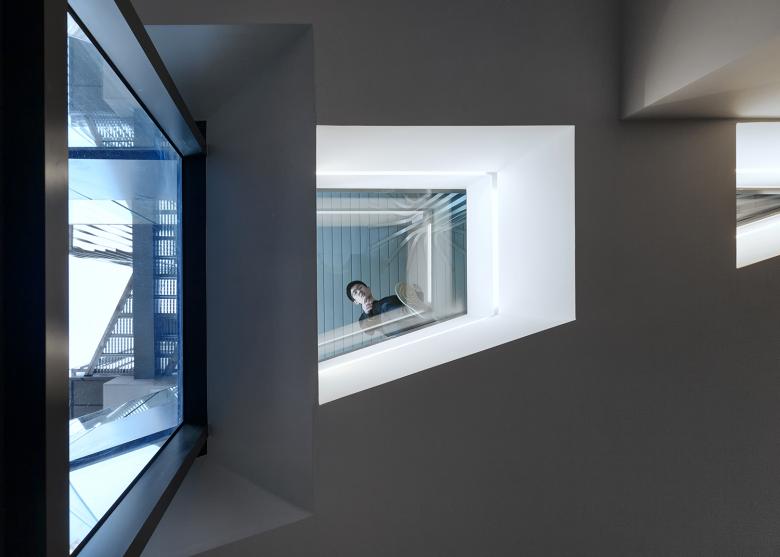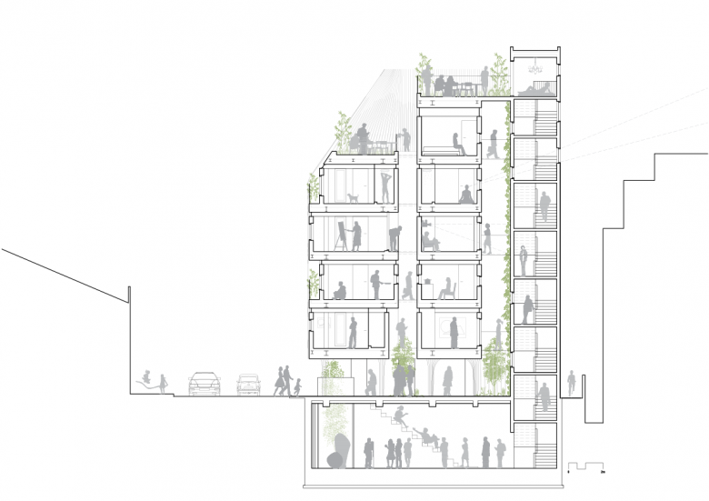 Section: The void spaces are either shared by the units or visually extend the interior experience while still maintaining privacy