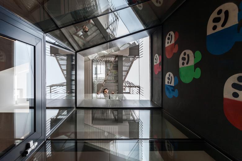 A micro courtyard connects the activity of the ground floor to the toy gallery below.