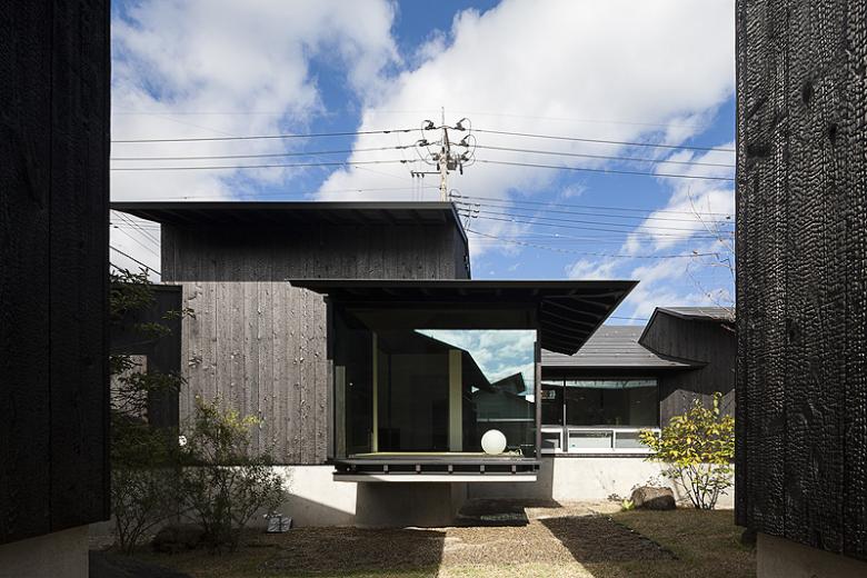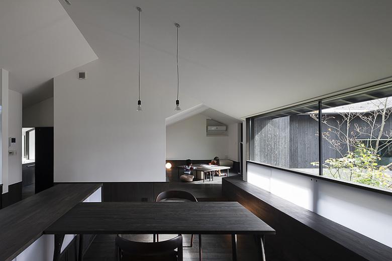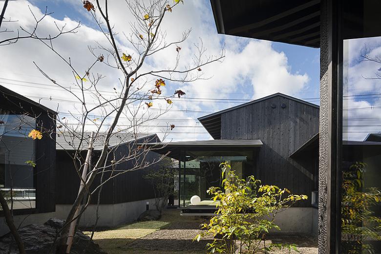 Because the building is located in a region where snow accumulates to about 500 mm in winter, we elevated the foundation 700 mm above ground level and extended eaves out from all sides of the roof, with the goal of preventing flooding and protecting the exterior walls. We also needed to minimize heat loss while effectively bringing natural light and views of the courtyard into the home, so designing the windows appropriately was important.