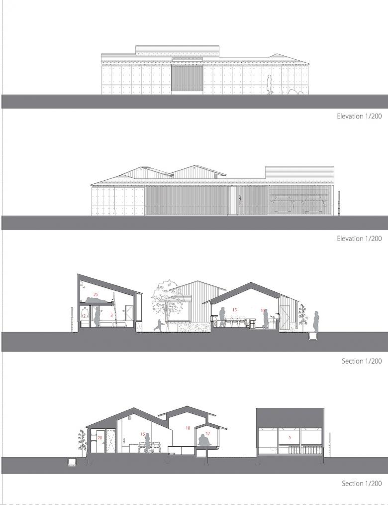 The lot faces an intersection on the outskirts of a provincial city. Because the neighborhood comprises a mix of multiuse buildings, restaurants, bars, and homes, identifying elements of the streetscape that merited preservation was challenging. Rather, in this project we felt it was important to offer a new sense of beauty and harmony to the existing streetscape.