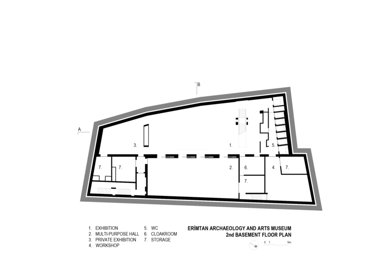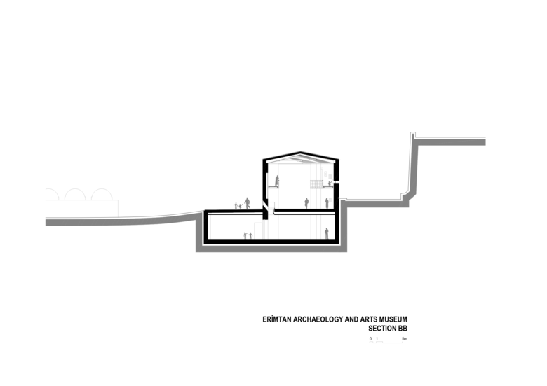 The museum café has a large terrace with prominent views of the Turkish capital city. Below the terrace sits a multi-purpose hall and an adjacent piano room for recitals and chamber music. The library, itself a beautiful spatial creation with a large built-in shelf, has double height along the north façade. The library and the workshops have their own entrances. The south façade is expanded to accommodate gift shop, information counter, lockers and elevator, with kitchen, storage and equipment room below.