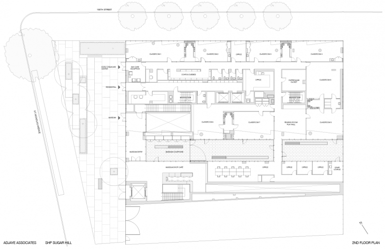 Adjaye Associates, which is based in London but has offices in New York and other locations, was responsible for the building design as well as the interiors in all spaces but the apartments. While the exterior is dark and colorless, the interior is light and full of color, especially in the spaces for children. The importance of these spaces is evident in statements by Adjaye at the time of the museum's opening: