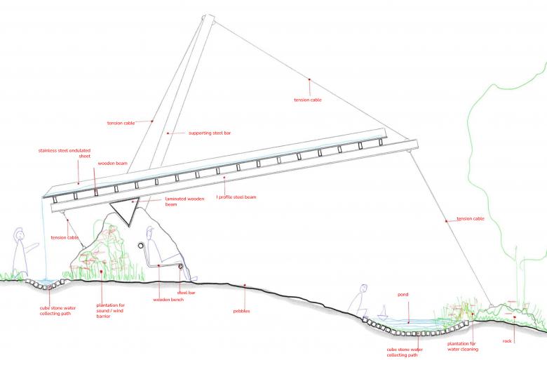 What makes this project unique for us is the use of materials. By incorporating rocks as structural elements, we aim to create a hybrid installation that combines natural materials with prefabricated components such as steel beams and roof cladding.