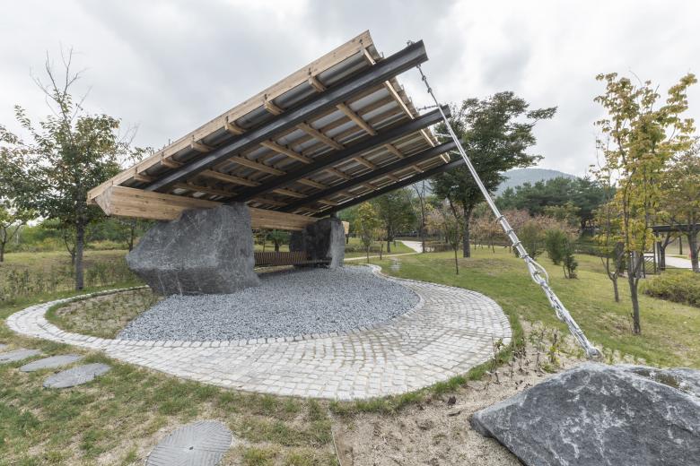 We were invited by the curator of the Suseong International Biennale, Choon Choi, along with three other teams, to create permanent public installations in designated green spaces throughout the Suseong-gu district for the inaugural Suseong International Biennale. The brief by the curators for these installations was a self-reflection place which also relates to the main theme of the biennial, Relational Field.