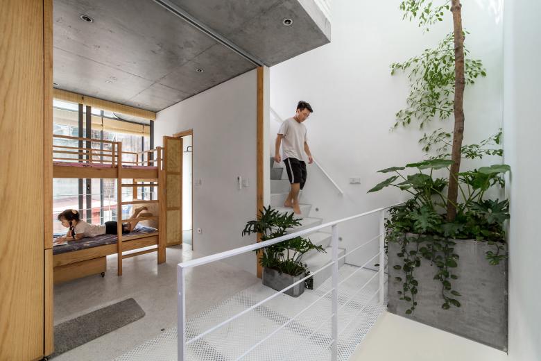 With such complex entry conditions, the architects were challenged to design a contemporary house reflecting the local cultural identity and the needs of Hanoi family.