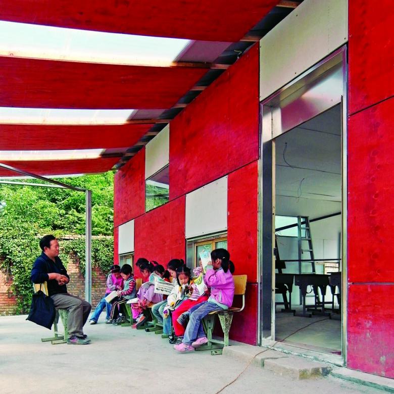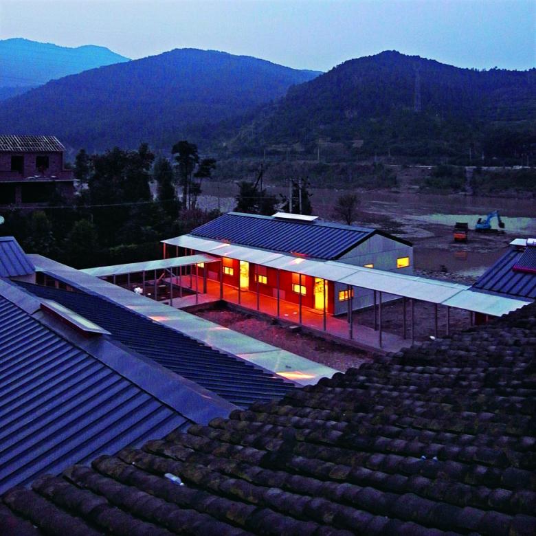 The second awarded school is located in Sichuan Province in the village of Xiasi. Here the earthquake of May 12, 2008 destroyed the former village school. The Hong Kong Charity Funds supported the project by architects Zhu Jingxiang and Xia Heng from Hong Kong for the New Bud Primary School. With principles of sustainability in the choice of materials, the use of energy, with a solar water heater and an eco-friendly toilet, the prefabricated building was constructed by volunteers, factory workers and local villagers within two weeks. The primary load bearing part is made of a steel frame which is strengthened by a prefabricated panel system. The two parts are bound together by mechanical fasteners to form a strong but light composite structure. Although the wall is only 16 centimetres thick, the system can resist high seismic forces.