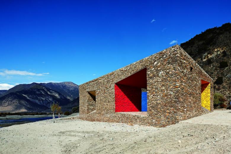 The third prize-winning project is part of the Bramaputra Canyon tourist development at Niyang River in Tibet. The Niyang River Visitor Centre was developed by standardarchitecture in cooperation with Zhaoyang Studio. The small solid block combines ticket office, dressing room for rafting, and toilets. The geometric volume and spaces connect the building with its surroundings. The architects adopted local building techniques by using a load bearing stonewall and timber beams for the roof. For the roof they used a 15 centimetre thick layer of vernacular Aga clay for thermal insulation and waterproofing purposes. By using local technology and materials for a contemporary building, the architects avoided a confrontation with local people and led them to a modern interpretation of their heritage. The vibrant Tibetan colors used for the inner public space reflect in an abstract way contemporary Tibetan habitats beyond symbolism. The project also received a special mention at the Tschernichow Prize in Russia after it has been awarded the WA prize in Beijing.