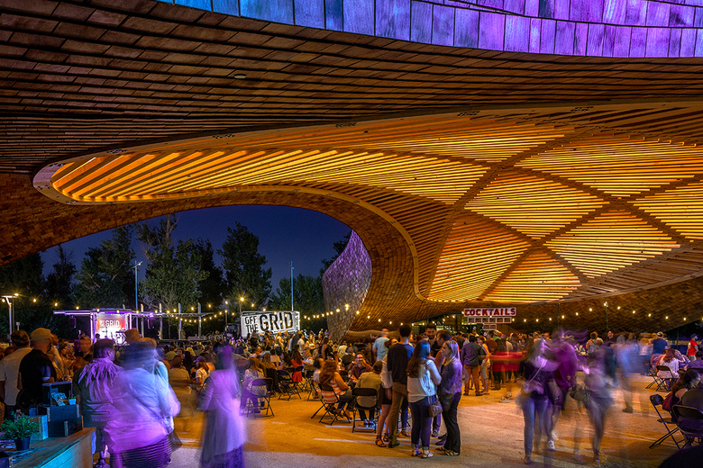 A multi-use structure, The Barn blurs the disciplinary boundaries of architecture, landscape architecture, and structural engineering. The first-ever structure of its kind, The Barn opened in June of 2016 and has since hosted al fresco dinners, festivals (up to 30,000 visitors per event), farmers’ markets, charity events, TED talks, etc. at the center of a framed view of Downtown Sacramento and providing a grand gateway to the riparian Sacramento Riverfront — something that has been long missing from Sacramento’s urban landscape.