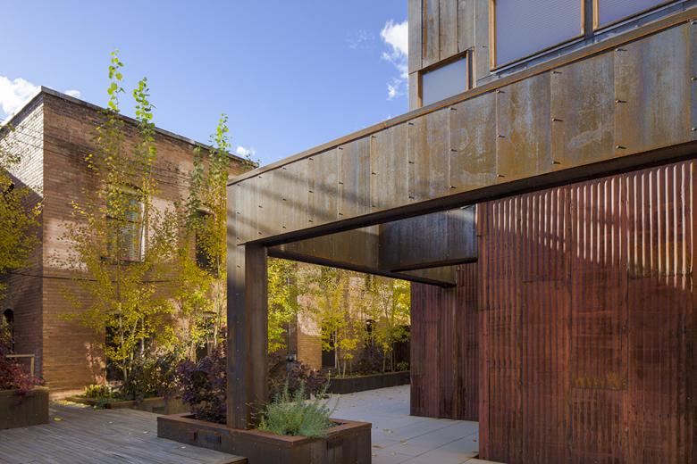 Unlike any of our past projects, this project had an extremely long gestation period of 20-plus years. It was only a year or so before construction started that we landed on a specific program based on the capacity of the site, height restrictions, zoning, etc. Ideas ranged from a 12-car parking lot to the building that currently stands. We worked with the city to change the zoning to a PUD (planned unit development) in conjunction with placing a Historic Overlay Zone on the parcel. In return the city gave us concessions on the building height and setbacks. Owning the adjacent parcel allowed an easement agreement which benefited the parking and parking access as well as the coordinated development of the open space between the two buildings.