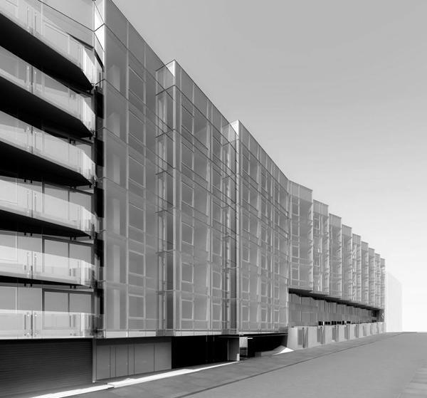 Once the permissible building envelope was established, Henry Smith-Miller, Christian Uhl and Richard DeMarco began the process of identifying different apartment typologies for inclusion in the building volume. After considerable research and testing the “fit”, they settled on a Hybrid scheme, comprised of ground floor maisonettes, “skip-stop” duplexes and triplexes with penthouses, and conventional studio, one, two, three, four and five bedroom units. All apartments are served by an underground parking garage. The West 53st street façade is folded and creased to permit views eastward and westward along the street. The maisonettes are set back from the street by screened private entry courts.