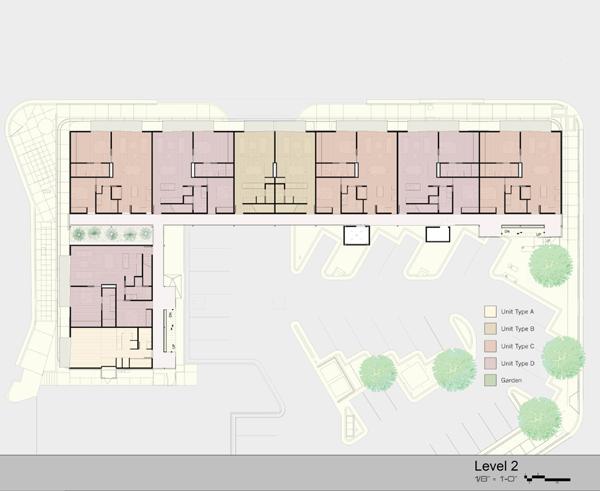 The East Village relates to contemporary architectural trends in multiple areas: it is a mixed-use project in a revitalized area of East Austin, thus contributing to New Urbanism principles; its solar screens and green roof, which is accessible to everyone, has earned the project a 3-Star Green Building Rating; in addition, other sustainable features include low-e glazing, recycled and recyclable materials, construction waste recycling, passive insect control and low impact native landscaping.