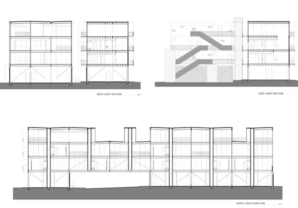 Vernacular precedents and artistic inspiration that respect the particular contemporary contextual conditions have driven this design process. The design of the building incorporates modest materials in creative and dynamic ways. The upper south and west facades are shielded from the hot Texas sun with a multi-faceted steel panel screen which double as a shading device and guardrails for the residential balconies. Brazilian artist, Helio Oiticica, inspired the design of these colored screens, which gives the project its iconic visual presence in the urban landscape. The entire ground level is full height glass mounted in front of a steel structure. This gives the illusion of the entire building floating on cubes of glass. To further enhance the visual “lightness” of the building, the entrance to the site is under a long span steel truss that supports two stories of residential units across a 65-foot span.