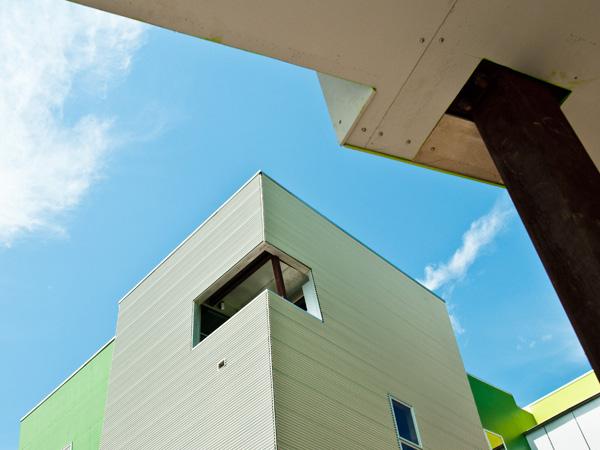 During the construction, we found we had to reduce the amount of glass and re-detail the rain screen to remain within the budget constraints. While the building was going up, the neighborhood was undergoing a significant uplift in mentality and perception. To continue the trend, we decided the exterior of the building should reflect and attract new visitors and residents. Accordingly, the bright green lifts the spirits of the residents and passersby.