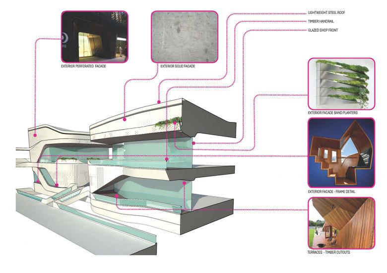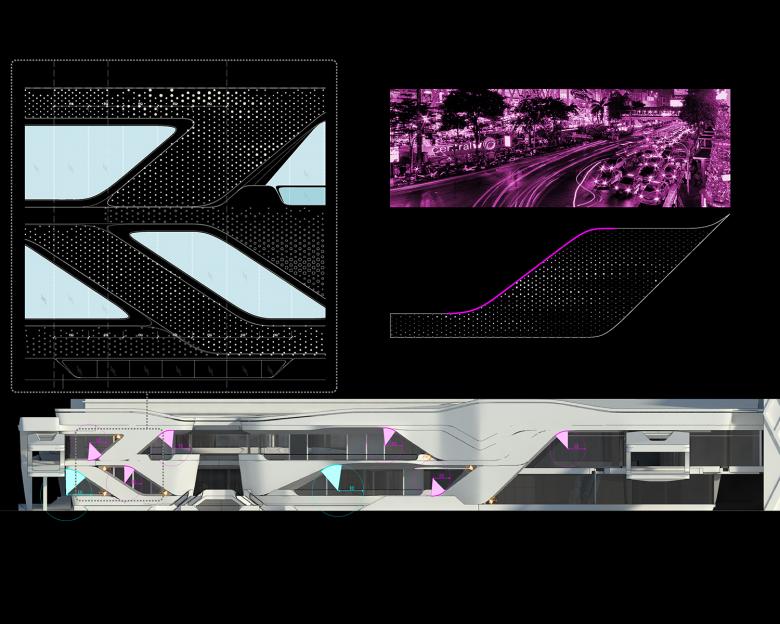 At the exterior, the building tries to capture the intensity, energy and movement of Bangkok. While at the interior, the project looks to capture the sophistication and atmospheric vibrancy of “al fresco” dining in European cafe culture and pair it with the energy and intimacy of the Soi’s of Bangkok to define a new contemporary Soi culture of sophisticated outdoor dining and lively pedestrian streets for Central World.