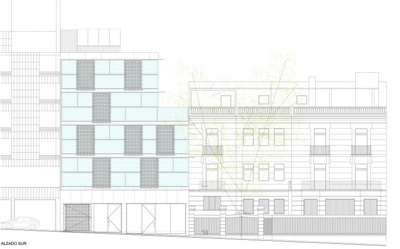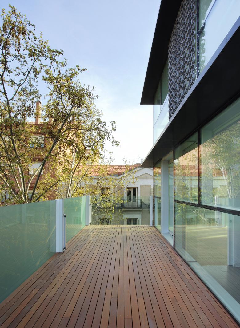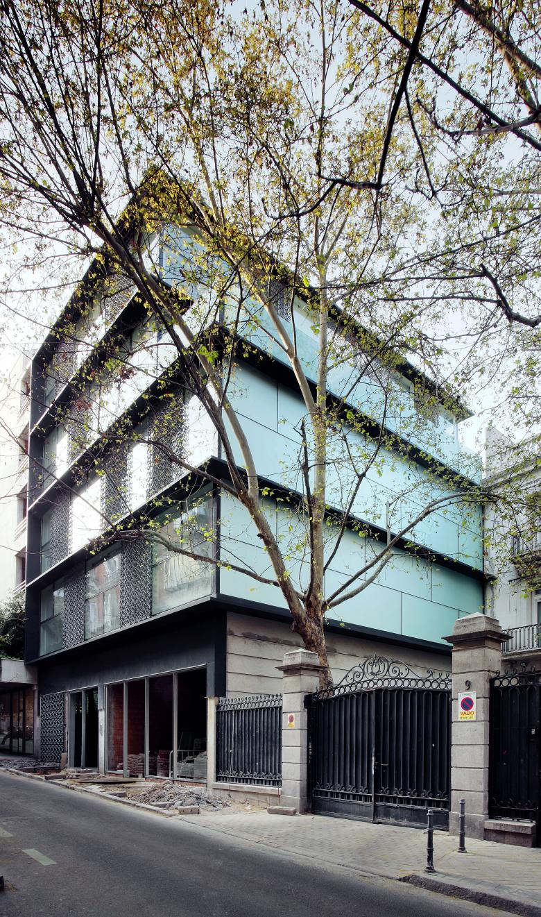 A building with four housing units situated in central Madrid (Orifila street), on the lands where the ancient stables of the adjacent palace were, led us to experiment with the points of coincidence between the traditions of the Madrilenian lookouts and a permeable curtain wall protected from the sun.