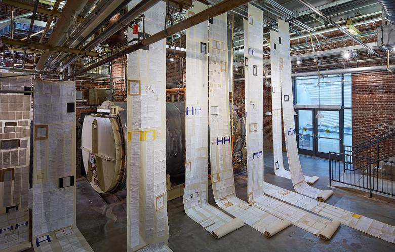 We imagined together what each space could be, investigated which qualities it already had that would be beneficial to the new program, and what adaptations needed to be made. A room with a sloped floor that was constructed as a “Milk Intake Room” became a dynamic theatre space, referred to as the RØDE House, with adjustable flooring that can support multiple stage and audience configurations. In the existing 70-foot-high tower we provided access to multiple existing mezzanine levels that allow visitors to look down and around and view art from a different perspective. We adapted a room constructed for the cheese fermentation process into a black-box theatre which benefits from the height and acoustic isolation of the existing space and is installed with highly controlled and tunable acoustics for experimental sound art.