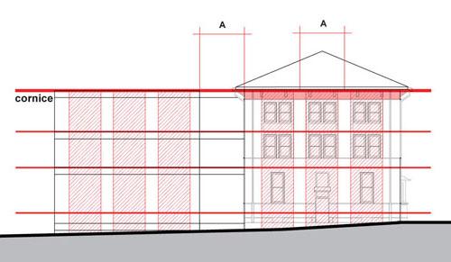A dialogue was developed thorough investigation of the existing building, the context, and past and present circumstances. The design began with an investigation of the original buildings to set the standard for adjacent design by analyzing the façade and massing organization, setting datum lines, proportions, heights and configurations, as a framework for the exterior design expression. Ultimately, our design process was a rigorous understanding of the existing building and the new program which compelled the addition to be both complementary and transformative.