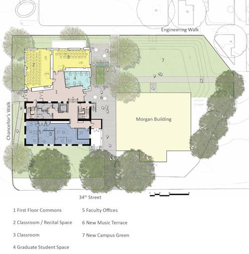 By re-using the historic Music Building, salvaging demolished building materials for re-use, improving energy efficiency of the existing building envelope, and using energy and water efficient systems, this project will become the first LEED Silver building on Penn’s historic campus.