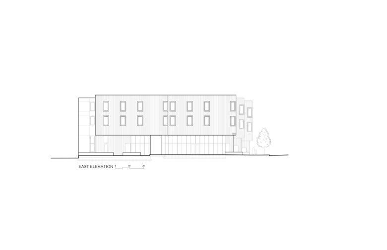 The objectives of the architecture are to first, create a lively street edge, and second, do so with a highly efficient plan that meets the project’s lean construction budget.