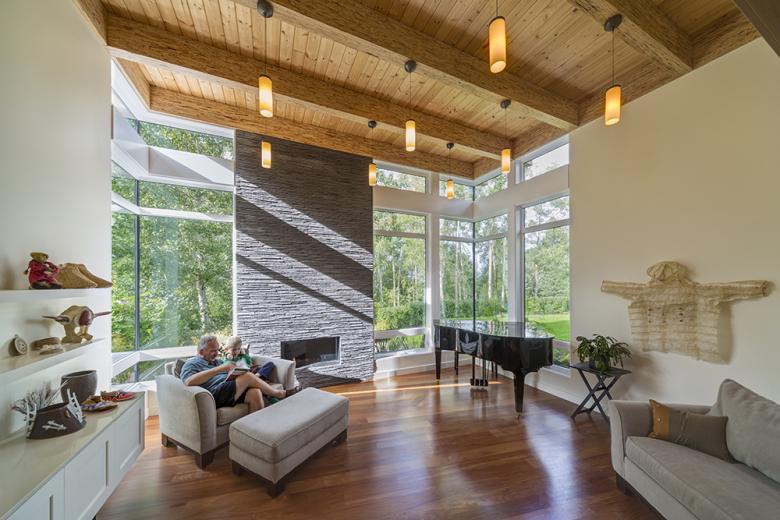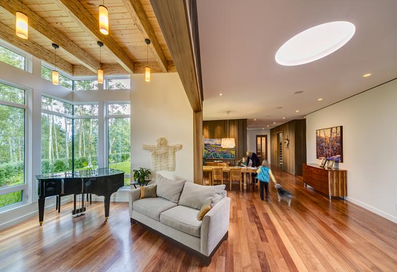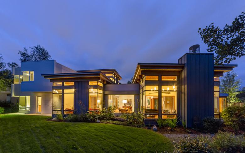 As each anchor is its own entity, the exterior finishes are continuous on all faces, bringing the historic thread indoors. The interior was fashioned for the active family of four; room for all to play, entertain, and display their artwork. The house is situated to capture the varied paths of the Alaska sun, to frame views of Cook Inlet and the Alaska Range, and to provide privacy from the surrounding public venues. Details throughout the home and the landscaping continue the play between disarrayed and orderly.