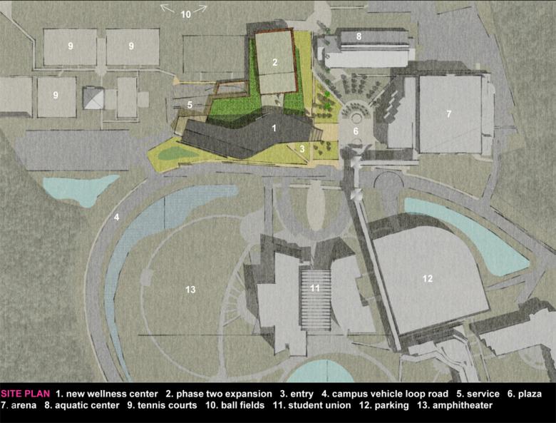 The vision for the project went through a few iterations prior to coming into focus. There was an existing, 9,700-sf building that housed the student recreation center for the University. The initial brief was to add on to that existing center in phases, with the final phase demolishing the existing facility. In evaluating the costs and schedules to develop this 4-phase construction process, the University elected to consolidate it into a 2-phase project. The components were reprioritized to fit the overall project budget resulting in the first phase as completed. The second phase will include the addition of a gymnasium, track extension, and physical education spaces.