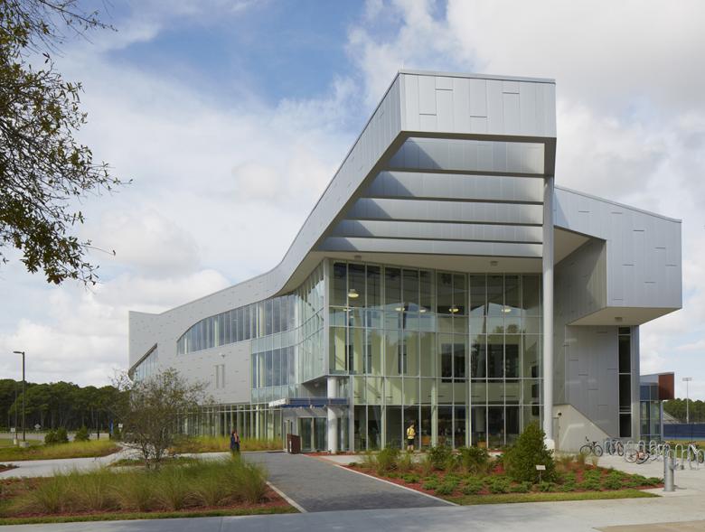 The University directed the team to obtain a LEED Silver rating for the facility. As a common practice, buildings we design constantly consider opportunities for sustainability, the use of new materials, and methods of construction which use enhanced digital fabrication techniques. All of these considerations have become almost standard practice within the industry and at the forefront during the design of UNF. Currently the project has been submitted as LEED Gold, surpassing the initial expectations of the client.
