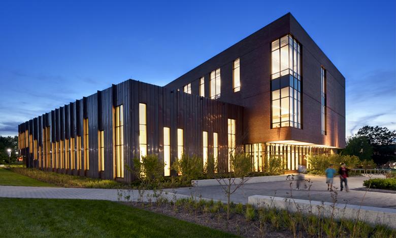 Oak Hall exterior at dusk
