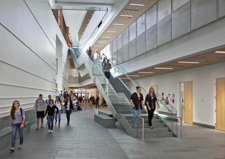 These are the first gold LEED buildings on this campus. The design continues our studies of sustainable strategies; it continues our efforts to include natural light in all teaching/learning spaces and gathering spaces; and it expands our efforts provide operable windows in all offices. The design extends our expertise and understanding of high technology classrooms, lecture halls and learning spaces.