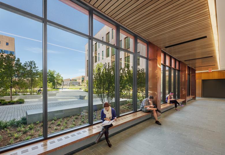 Oak and Laurel Halls serve the College of Liberal Arts & Sciences at the University of Connecticut. Leers Weinzapfel Associates carefully inserted the contextual yet contemporary buildings into the school's Storrs campus. Although separated from each other by an elliptical plaza, the S-shaped Oak Hall and rectangular Laurel Hall share a similar exterior language of brick, copper, and vertical windows. The architects answered some questions about the two buildings.