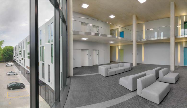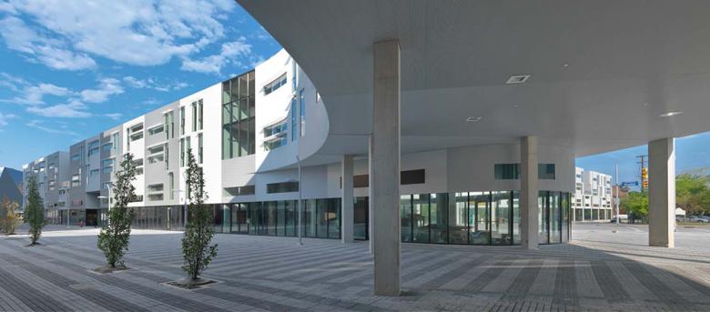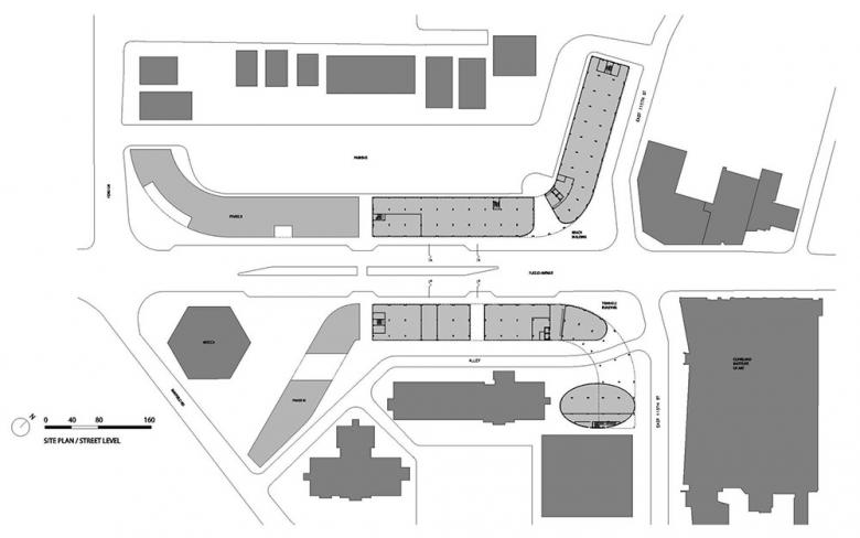 We were interested in repairing the fragmented urban fabric with buildings that would sew the pieces together.  We also wanted to complement the strong urban fabric of downtown Cleveland with a contemporary "Uptown" fabric using a similar but new language of punched openings. This is phase one of a project that will include two more buildings, one of which is about to start construction. When done it will be a long block of substantial urban fabric with two institutions, MOCA (Museum of Contemporary Art) and CIA (Cleveland Insitute of Art) as terminuses at the ends.