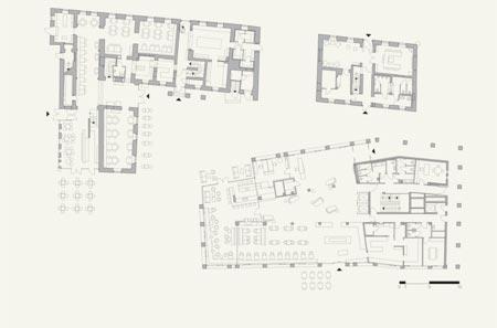 Dennoch haben wir es nicht mit einer befestigten Brache, sondern mit einer wohl geordneten Folge öffentlicher Räume zu tun, deren Ausbildung eng mit dem Hotelneubau im südöstlichen Teil des Gevierts zusammenhängt.