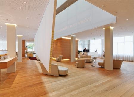 Lobby und Restaurant: Durchlaufender Raum von Fassade zu Fassade.