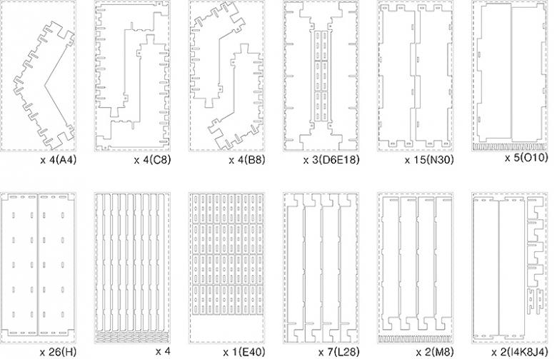 Plywood, and particularly plywood made from underutilized forest thinnings, is an excellent construction material. It’s affordable, conforms to strong quality standards, can be obtained anywhere in the world, and is made from a renewable resource. My goal is to capitalize on these positive attributes to the greatest extent possible and develop a construction method that anyone can successfuly use to build a home.  By simplifying conventional construction methods, it’s possible for even a beginner with no construction skills to build a house simply by following the instruction manual. Through this process people feel a closer connection to the building and a sense of ownership. I place great value on the simplicity of the method, which is what enables those things. In order to further reduce cost, I have experimented with various patterns for cutting parts from sheets of plywood, and aim to develop a design with no waste.