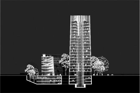 The project seeks to be a piece of inhabited landscape designed to articulate a circuit of plazas and parks. The base of the building is freed up to generate a public plaza and the entrances to the upper floors.