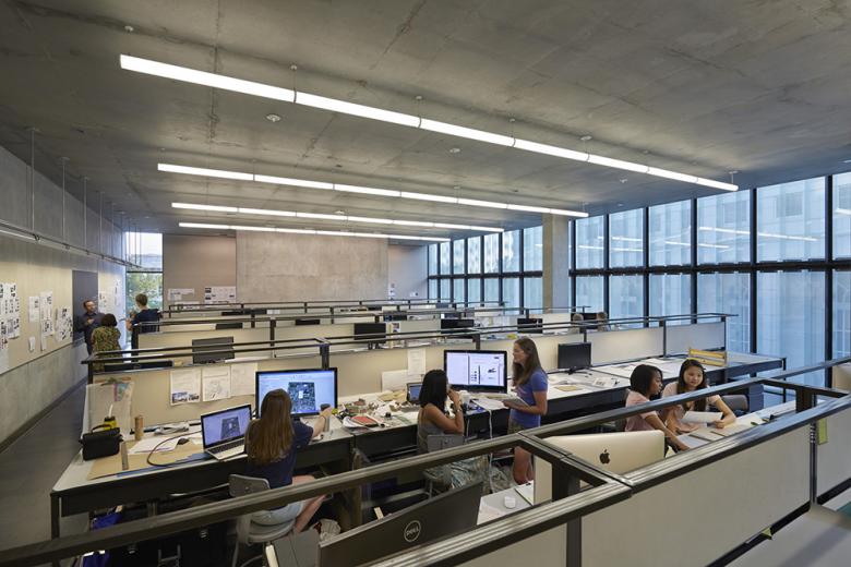 In a similar way, all of the faculty and staff were interviewed during the programming phase to determine their aspirations for the building at large and its key spaces, as well as detailed information about perfomative aspects of particular spaces such as classrooms, digital fabrication labs, or other instructional areas. An extensive effort was made to inform the faculty and staff about the varied nature of offices available to them. From this process, the existing building in particular was designed to use as many of the operable windows as possible for use in faculty offices to prevent the possibility of offices without windows. In a number of locations existing offices were reconfigured to reduce or eliminate inequities between offices for greater parity. The faculty also were a great resource in critiquing the design itself, as they are uniquely qualified as architects, landscape architects, and interior architects.