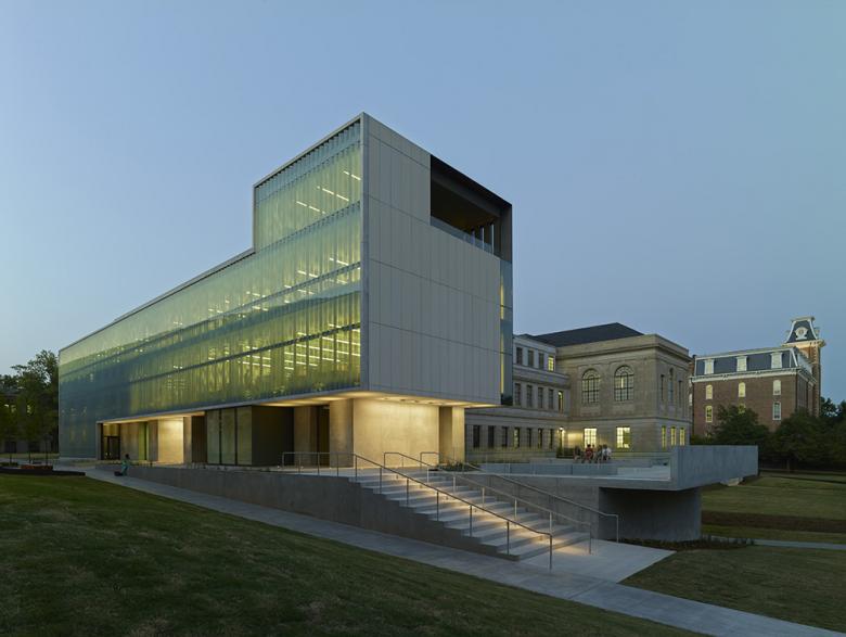 The Steven L. Anderson Design Center, a 37,000 square foot addition to Vol Walker Hall, designed by a collaboration of Marlon Blackwell Architects and Polk Stanley Wilcox Architects, is intended to be a modern complement to the traditional architecture of Vol Walker Hall, sensitive to the past without being imitative of it, and conceived to enhance the spatial character of the historic campus plan. To achieve these design goals, the addition was conceived in plan and massing to harmonize with Vol Walker Hall’s proportions and spatial configuration. The footprint of the addition replicates that of the traditional structure’s entry (eastern portico) wing, physically and conceptually balancing the old and the new.