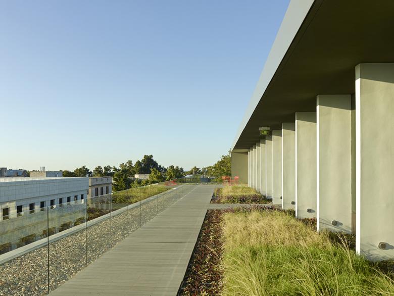 Green roof outside faculty offices in the addition