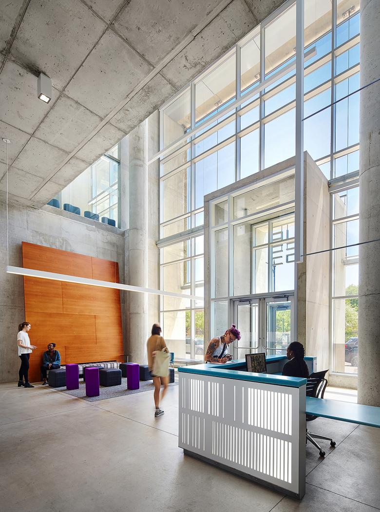 The project didn’t change significantly from its initial concept. The second- and third-floor parking levels were originally visible from the park across 53rd Street, but during the review process, the University of Chicago requested that the view of the parking be obscured from the park. As a result, apartments were added at the second and third floors separating the parking deck from the street. The added units ended up with an amazing view of the park as well.