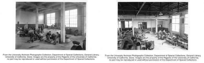 The original 34,000-square-foot building, designed to house the university’s growing agricultural engineering program, was one of the earliest buildings on campus. Its two-story Spanish-style wing faces north to the central quad and housed classrooms and offices. To the south, three lofty, clear-span wings served as large shops for hands-on research, design, and fabrication of farming machinery.