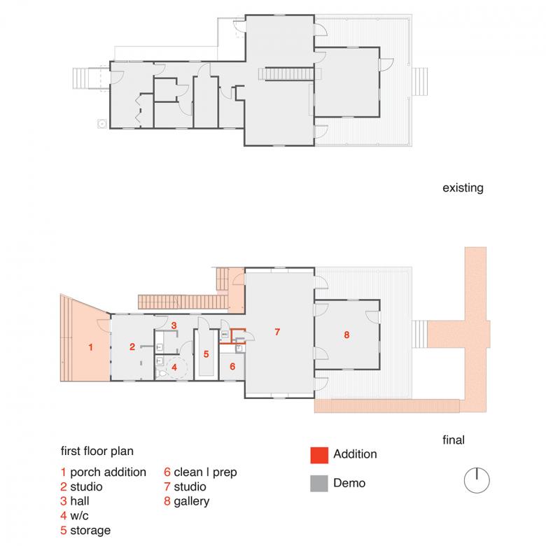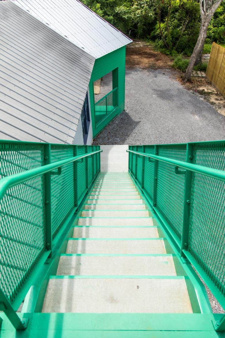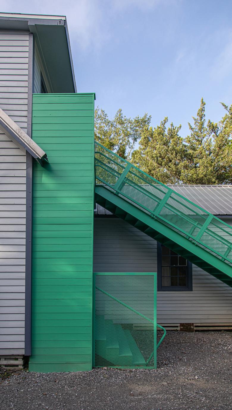 Initially, the museum planned to remove the existing non-code-compliant interior stair, which previously divided the main studio space into two parts, and replace it with a modern monumental stair. Thankfully, the museum director asked if we could move the stair to the exterior, thereby opening up the middle of building to one large studio space and creating an opportunity to design an impactful exterior stair.