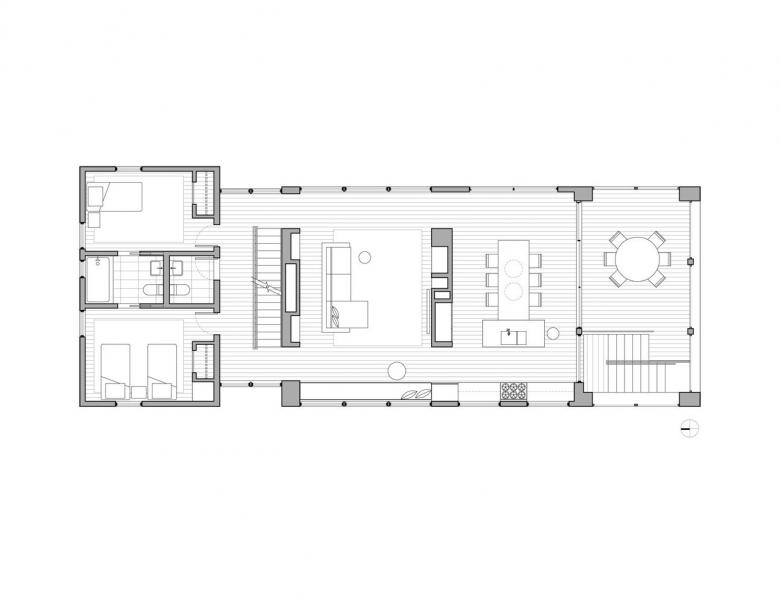 The owners were repeat clients for the architects. In 2004, the architects had designed their primary residence in Pelham, NY – a major renovation including the insertion of very modern interiors in a large existing Victorian house. When this lively family of five considered building a weekend home to serve as a hub for their extensive network of family and friends, they called Lubrano Ciavarra because, as they said, "They balance a bold, exciting, contemporary design aesthetic with practicality and durability. They make a complex and challenging process a fun collaboration." Many of the firm’s clients retain the firm for multiple projects, and remain friends long after the completion of the work.