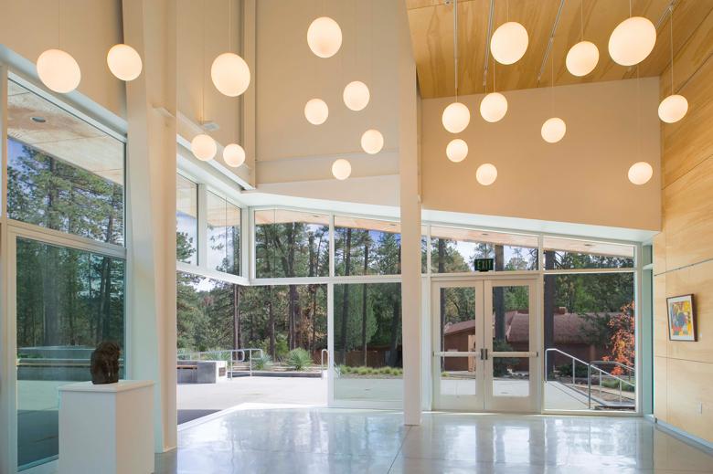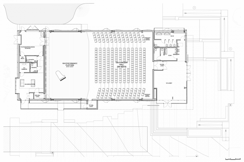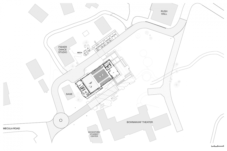 The project began when Sander Architects won an invited competition to design the Idyllwild Performing Arts Center (IPAC), a new performing arts center for Idyllwild Arts Academy. The school is one of the country's top three high schools for the arts. The student body is represented by dozens of countries, including much of the Pacific Rim, South America and Europe. Sander Architects' site strategy was to place the Performing Arts Center to one side of an open lot, thereby creating a new green quad at the heart of campus. This quad also aligns with Lily Rock, the dominant geological feature in the Idyllwild Valley.